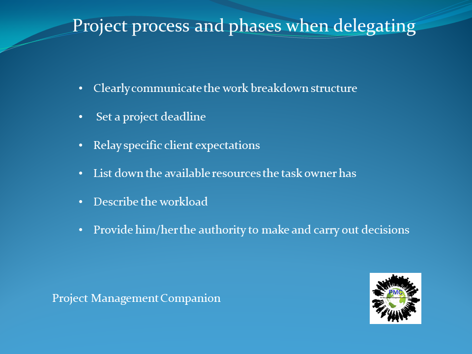 Additionally, to ensure the project process and phases are when delegating, be sure to:
